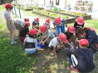 2年生が生活科の時間に、野菜の苗と種をお家から準備して、その苗や種を学校で植えました。トマトやキュウリなどそれぞれ育てたい野菜を準備して植えました。