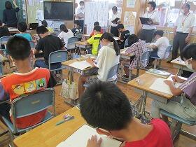 5・6年生を対象に「非行防止教室」の学習をしました。都城市警察署の補導課の方に来ていただいて学習しました。インターネット上の問題やトラブルの実際や現状について話を聞き、どのようなことを考えてインターネットを活用していくのか考えていくというものでした。高学年になると家庭でもネットにふれる機会が増えて日常の生活に入っいます。夏休み前でもあったので、良い機会になりました。
