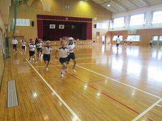 以上のような流れで、体育着に着替えて全学年で走ります。
