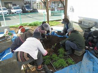 地域のフラワーボランティアの方々6名に来ていただき、移植作業を手伝ってもらいました。