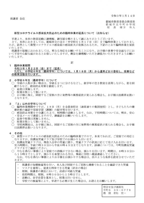 新型コロナ感染拡大防止に係る3学期始業前の対応について