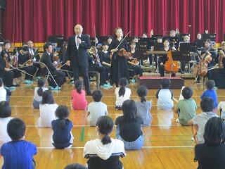 広島交響楽団が来校され、団員約60名が一堂にそろい迫力のある演奏をしていただきました。