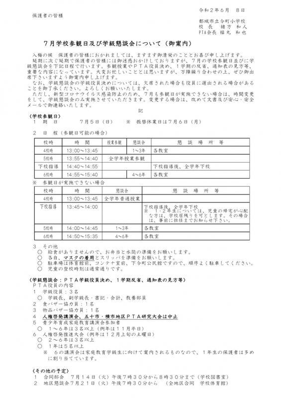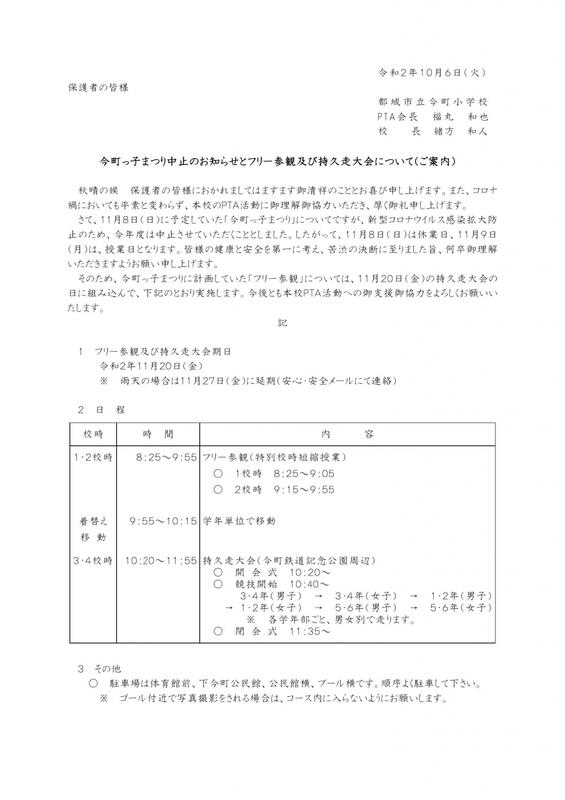 今町っ子まつり中止とフリー参観及び持久走大会について(ご案内)