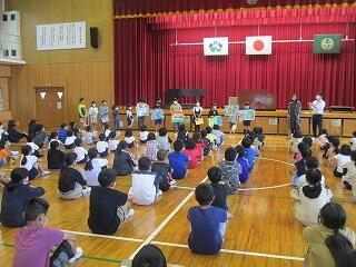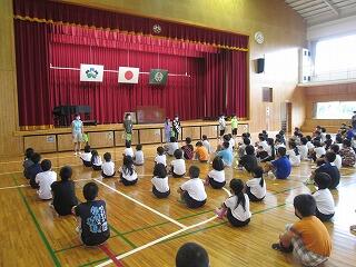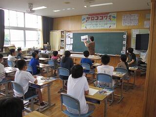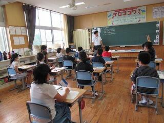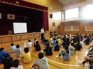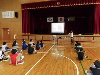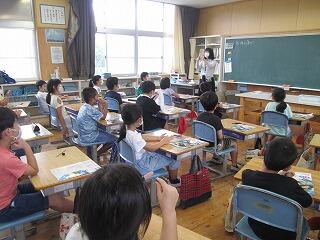 本校では、毎年、全校児童を対象に国際理解学習をしています。今年は9月30日の2時間目に1・2・3年生、3時間目に4・5・6年生を対象に実施しました。