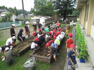 夏・秋に咲く花の準備をするために、朝の時間を使って学級園の整備を整備を行いました。本校では、情操教育一環で「フラワータイム」として取り組みます。