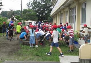 午後から運動会の準備をしました。4・5・6年生児童、職員、PTA役員の方々と行いました。
