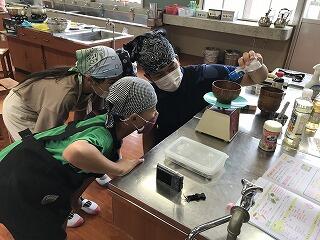 グループに分かれて、分量を正確に計測し、みんなで協力しながらおいしい「ゆで野菜」を作っていました!