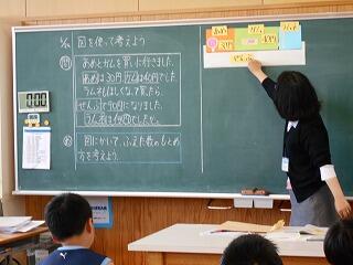図を使って考える問題でしたが、子どもたちは、線分図などから答えの出し方を考えて、理解を深めていました。