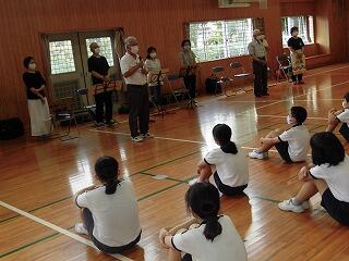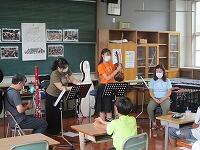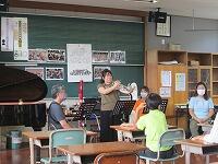 本日、楽団5名の方々が来校され、当日の打合せと6年生を対象としたワークショップがありました。