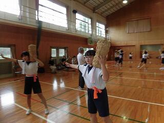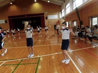 5・6時間目は、5・6年生による俵踊りの練習を保存会の方と一緒に練習しました。今日は本番を想定して外で練習をしました。場所の確認、動きの確認をしながら進めていきました。動きや表現も様になってきました。