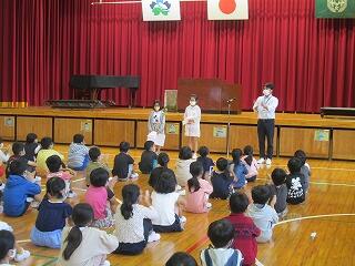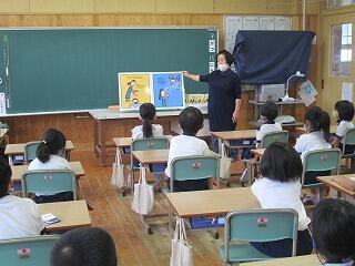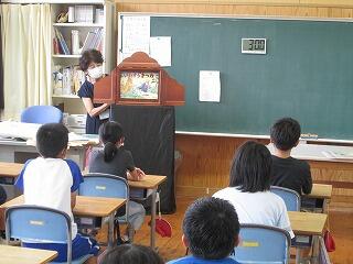 1・2・3年生を対象に「読みかせボランティアかしの木」と紙芝居「まねきねこの会」の方に来ていただいて、読み聞かせと紙芝居をしていただきました。