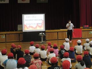 教職員、新PTA役員の紹介をし、その後、夏休みの学習や生活のこと、運動会のこと、奉仕作業等のことについて説明やお願いをしました。