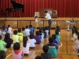 ワークショップでは演奏者によるバイオリン、チェロ、ファゴット、トランペットの紹介していただき、その特徴や生演奏による曲紹介をしていただきました。子どもたちはそれぞれの楽器の音色に引き込まれながら鑑賞していました。後半は、子どもたちも、鑑賞教室の日にオケと一緒に演奏する「おもちゃのシンフォニー」を楽器別に分かれて指導を受けながら練習しました。6年生にとっては、音楽のプロから直接指導受けられる貴重な時間になりました。