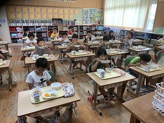 新型コロナウイルス感染拡大で落ち込んでいる県産完熟マンゴーの消費拡大を図るために、JA宮崎経済連が食材を提供し、今町小学校は9月3日の給食で出されました。