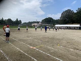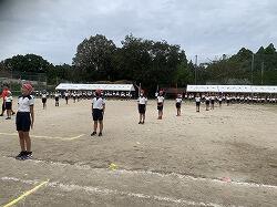 天候が心配されましたが、午前中運動会を実施ました。開・閉会式、エール交換・応援、徒走、団技、リレー、ダンスをしました。天候か心配でしたが、無事練習を行えました。