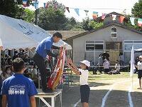 今年のスローガンは、「力を合わせてあきらめず、みんなでとろう優勝旗」です。