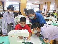 5年生と6年生が家庭科の学習で、裁縫をしています。