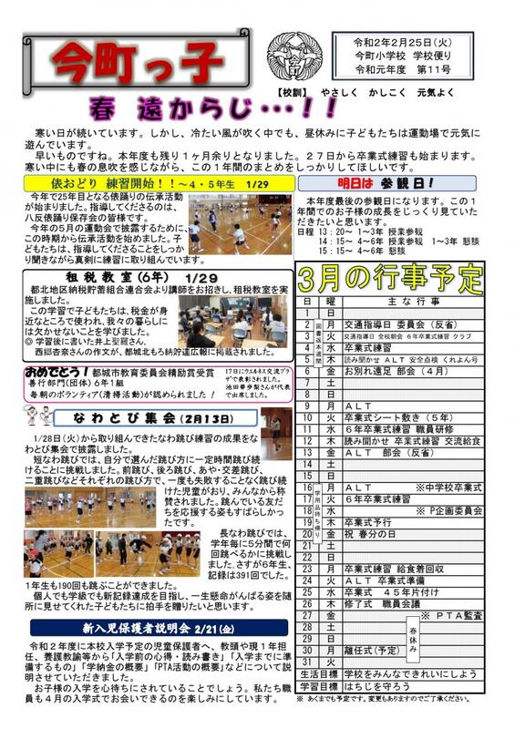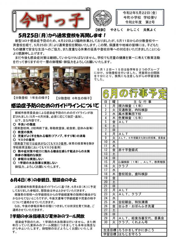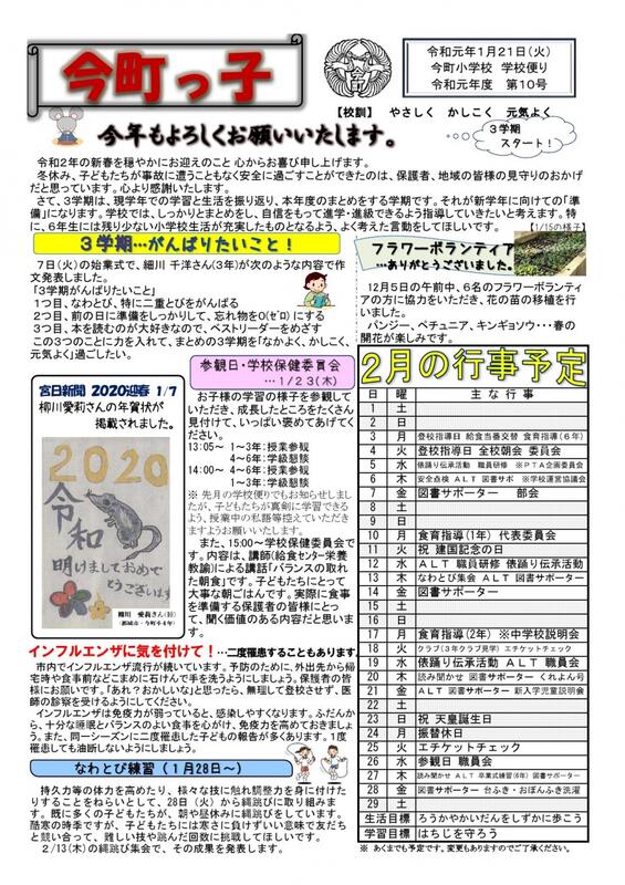 第2号 今町っ子(学校便り)の案内