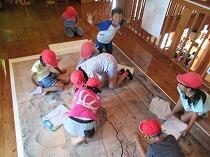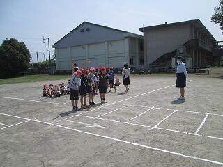 施設利用の子どもだたちは、職員室前の廊下で受付を済ませて、運動場で元気よく遊んでいました。今日は20数名の子どもたちが遊びに来ていました。