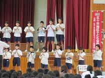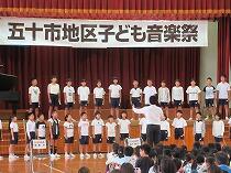 五十市中学校体育館で行われた五十市地区子ども音楽祭、合唱とリコーダー演奏を披露しました!