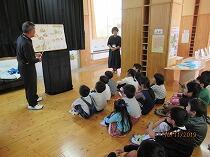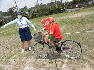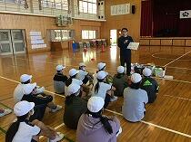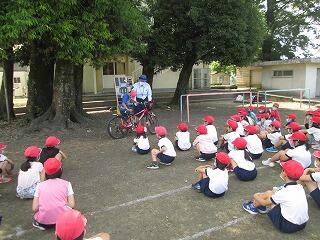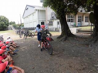 都城市の交通安全協会の方に来ていただき、交差点や信号のあるところでの左右確認や横断の仕方、自転車の点検の仕方などを教えてもらいました。
