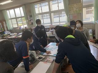各地区に分かれて、風水害による被害や危険にどのようなことがあるのかを考えさせて、その後、集団下校を行い担当の先生たちと一緒に危険箇所の確認を行いました。