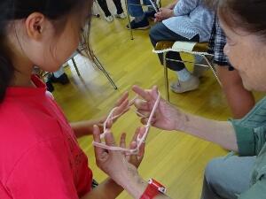 おじゃみをかごに投げ入れるゲームで利用者さん達と対戦したり。
