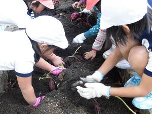 1、2年生は、生活科で、5月に苗を植え、11月にいもほりをしました。