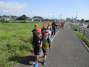 春の温かな日に「お別れ遠足」を梅北運動公園で行いました。片道30分少しの近隣に公園です。公園までは、1年生と6年生は仲良く手をつないで歩いて行きました。公園近くになると1年生が疲れ果てて、6年生がおんぶしてあげる光景も見られました。