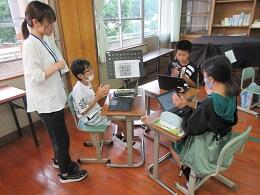本校に五十市中学校の生徒3人が来て、2日間の職場体験をしました。1日目は4年・5年・6年に入り、2日目は1年・2年・3年に入りました。本校の子どもたちは、年上のお兄さんお姉さんにうれしそうに話しかけ、休み時間にはじゃれつく様子も見られました。2日目には、6年生に向けて、中学校の生活の様子を詳しく説明してくれました。将来、教員になれるといいですね。