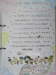 学校給食感謝週間に、各学級で子どもたちが、給食センター、パン・米飯製造業者、牛乳製造業者向けにお礼のメッセージを書きました。よく書けているものを学年から1点ずつ写真に撮りました。(名前は消しています。)学校給食にはこのほかにも、生産者や卸売り業者、運搬業者、栄養士や調理師などたくさんの方々が関わっています。また、食物そのものに感謝することも大切です。子どもたちには、このような機会に感謝の気持ちをもたせていきたいと思います。