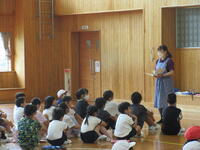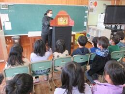 この日は、地域のボランティアの方々による紙芝居・読み聞かせが行われました。1年は紙芝居で、子どもたちは挿絵に目を輝かせながら見入っていました。2年生は絵本の読み聞かせで、恐竜が主人公の「おまえうまそうだな」のストーリーに、子どもたちがぐっと引き込まれていました。3年も絵本の読み聞かせで、山猫たちとねずみたちが落ちた穴からどうやって抜け出せるかを話し合う面白みのあるストーリーに、子どもたちがじっと聞き入っていました。紙芝居や絵本の力はすごいものがあります。