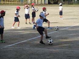 授業の様子です。1年生は、運動場で体育科の学習「ボールけり遊び」をしていました。2人が向かい合って真ん中に置いたポストをめがけてサッカーボールをけり、当てて倒すゲームをしていました。みんな一生懸命にボールを蹴っていました。5年生は、理科の学習「もののとけ方」で実験をしていました。水の温度を高くするとミョウバンがたくさん溶けるのか、温度計で水の温度を測りながら溶かしていました。こちらも真剣な眼差しで実験に取り組んでいました。子どもの真剣な様子はいいものです。