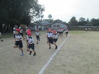 今日は曇り空。今日も子どもたちは元気よく走っていました。