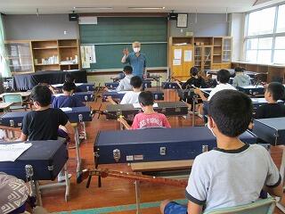 6年生が三味線の授業をしました。三味線指導者を講師として取り組みました。今日は、安久節を練習しました。来週と再来週も1回ずつ計画しています。