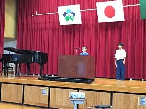 全校児童を代表して、2学期がんばりたいことを3年生と5年生が発表しました。