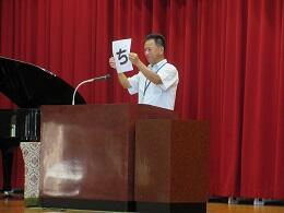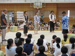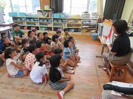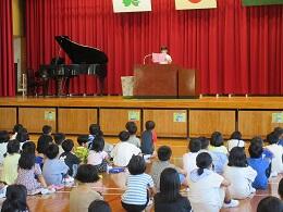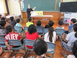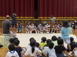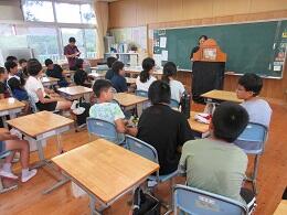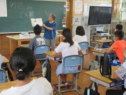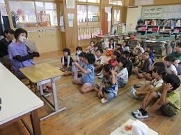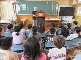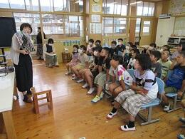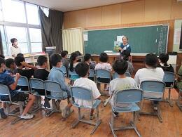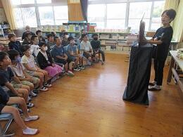 本校では、毎週火曜日の朝の活動の時間に、ボランティアの方々に読み聞かせ・紙芝居をしていただいています。この日は、2学期最初の読み聞かせ・紙芝居でした。子どもたちは、上学年であっても、絵本の読み聞かせや紙芝居にじっと聞き入っていました。本校ではこのボランティアの方々を増やしたいと考えています。地域の方や保護者、卒業生の保護者などを募集しています。経験は要りません。見学もできますので、どうぞ学校にお越しいただき見学をしてください。