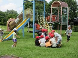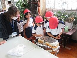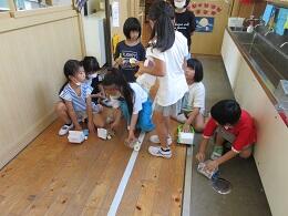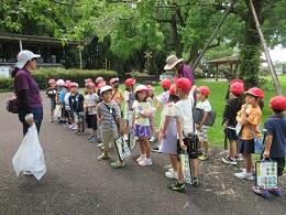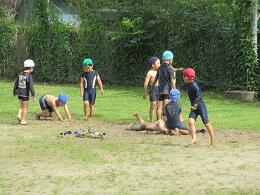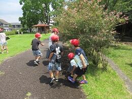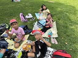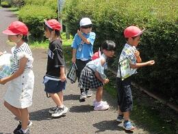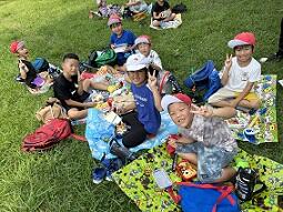 1年生は、生活科の学習で生き物を探しに、学校の近くにある鉄道記念公園(機関車公園)に行きました。子どもたちは、テントウムシやバッタなどの昆虫を見つけ、「〇〇がいたよー!」と大きな声で周りの友だちに知らせていました。後半は20分ほど公園の遊具で遊びました。梅雨の合間の蒸し暑い晴天でしたが、子どもたちは大はしゃぎで遊んでいました。