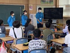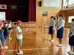 本校に五十市中学校の生徒3人が来て、2日間の職場体験をしました。1日目は4年・5年・6年に入り、2日目は1年・2年・3年に入りました。本校の子どもたちは、年上のお兄さんお姉さんにうれしそうに話しかけ、休み時間にはじゃれつく様子も見られました。2日目には、6年生に向けて、中学校の生活の様子を詳しく説明してくれました。将来、教員になれるといいですね。