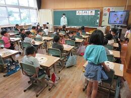 この日は夏休みの登校日でした。全校朝会をリモート方式で行い、校長から8月6日の広島平和記念日、8月9日の長崎平和の日、8月15日の終戦記念日についてふれ、過去に日本が戦争をしていたこと、原子爆弾が落とされたことなどを知らせ、戦争の悲惨さや平和の大切さ、今自分たちにできることなどについて話をしました。全校朝会の後、各学級では、夏休みの宿題の指導、夏休み中に読む図書の貸し出しなどを行いました。子どもたちには、夏休み後半も健康・安全に過ごしてほしいと思います。