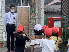 2年生は、生活科の学習で、学校の近くにある郵便局と保育園に行きました。郵便局では、局長さんから郵便ポストの中や郵便局の中を見せてもらい、郵便の様子についてお話を聞かせてもらいました。保育園では、保育園の先生方やお友だちが迎えてくれました。保育園の先生に質問をしたり、保育園のお友だちから小学校のことについて質問を受けたりしました。この保育園に通っていた2年生がたくさんいて、懐かしそうに保育園の様子を見ていました。郵便局の皆さん、保育園の皆さん、ありがとうございました。