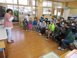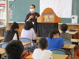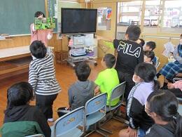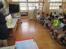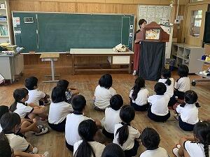 この日は1年・2年は読み聞かせ、3年は紙芝居がありました。毎回、地域のボランティアの方々が交代で本校に来てくださっています。子どもたちは、絵本や紙芝居の絵を食い入るように見つめ、お話の語りを熱心に聞いていました。読み聞かせ・紙芝居は、情操教育に効果があると言われています。子どもたちの心がより豊かに育っていくことを願っています。