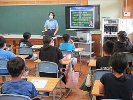 5年・6年では、夏休みを前に、SNSの利用に関する「非行防止教室」の学習をしました。子どもたちは、都城警察署の方々を講師に、スマホやゲーム機でのゲームのしすぎによる生活の乱れ・課金の問題、ゲームの通信機能やラインなどによる個人情報の流出や犯罪に巻き込まれる恐れなど、事例を聞いてその危険性を知ることができました。SNSを利用するときはルールを決めること、加害者や被害者にならないよう気をつけることなど、たくさんの学びがありました。