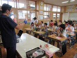 都城警察署交通安全協会の方々を講師に、交通安全教室を行いました。雨天のため体育館で、また、コロナ対策のため上学年は6年が、下学年は3年が対面で、ほかの学年はリモート方式で行いました。上学年は、交差点や道路横断の際の安全確認や危険回避について学びました。下学年は、自転車の点検や安全な乗り方について学びました。この教室で学んだことを、交通事故から健康や生命を守る行動につなげて生かしてほしいと思います。交通安全協会の皆さん、ご指導、ありがとうございました。