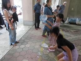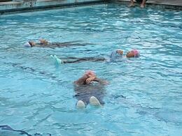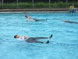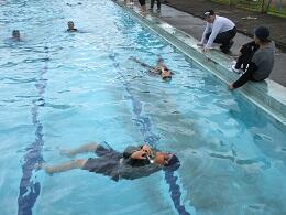 5年・6年は体育の水泳の学習で、衣服を着たまま水に入る「着衣泳」をしました。子どもたちは、服を着たままで水に入り、いつもの学習と同じように浮いたり泳いだりして、「泳ぎにくい」「服が重たい」と動きにくいことを体感することができた様子でした。最後に空のペットボトルを胸に抱いて、長い時間浮く練習をしました。上手に浮くことができる子がたくさんいました。これから夏休みにプールや海水浴に行く機会があるかもしれません。水の事故にならないよう気をつけてほしいと願っています。