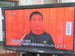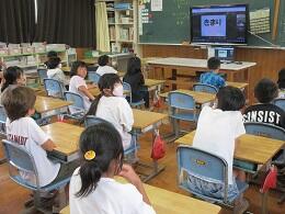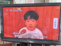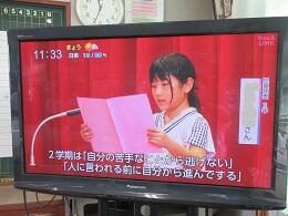 2学期が始まりました。始業式では、3年生の代表児童が「2学期に頑張りたいこと」を発表しました。始業式の後、各学年教室では、子どもたちが夏休みに取り組んだ作品を提出したり、宿題の点検をしたりしていました。始業式の様子は、UMKテレビ宮崎の取材があり、午前中の番組で代表児童の発表の様子や、式後にインタビューを受けた児童の様子が放映されました。テレビに映った子は喜んだことと思います。学校では、職員がテレビ放映の様子を見守り、放映後拍手が湧き起こりました。