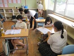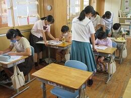 夏休み中に、本校で、都城市社会福祉協議会の主催による「今町っ子まなびや」が行われました。福祉協議会のボランティアの方々やボランティアの高校生や中学生が、本校児童の希望者に夏休みの宿題・課題などで難しいところのやり方を優しく丁寧に教えてくださいました。本校の子どもたちは、ボランティアの丁寧な指導を受けて宿題や課題を着々と進めていました。ボランティアの皆様、ありがとうございました。高校生の中には将来教員を目指している生徒がいました。将来がたのしみです。