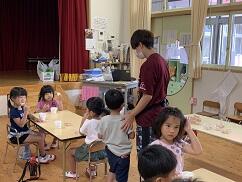 本校の職員2名が、近隣の保育園に行き、丸1日の「保育体験研修」をさせていただきました。本校職員は、小学生よりも幼い保育園児を相手に初めは戸惑ったようですが、保育園職員の方から教わりながら、保育園児のお世話をしたり、会話をしたりすることができました。このような体験研修は、保育園・幼稚園の保育・教育の様子を知ることで、小学校入学時に子どもたちにどんな対応が必要なのかを考えるきっかけになると考えます。本校職員も、初めて知ることが多くとても勉強になった様子でした。実りある研修をさせていただき、ありがとうございました。