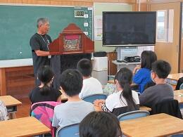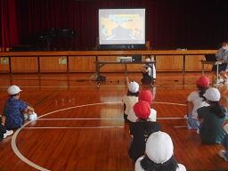 モンゴル出身の都城市国際交流員に学校に来ていただき、国際交流学習を行いました。モンゴルの面積や人口などクイズや動画を織り交ぜながら楽しく紹介してくださいました。下学年は、5つの動物(ヒツジ、ウマ、ヤギ、ウシ、ラクダ)の動画を見たり、体操をして楽しく体を動かしたりしていました。上学年は、モンゴルの国歌を映像を交えて見たり、石を使った伝統的なゲームをしたりしました。子どもたちは、モンゴルのことを楽しく学ぶことができました。