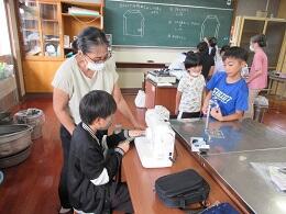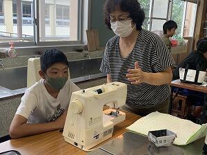 5年の家庭科では、布をミシンで縫ってエプロンを作る学習をしています。ミシンで布を縫う活動では、地域のボランティアの方々に学習支援をしていただきました。5年生は、縫い糸のセットの仕方、針を布に刺す縫い始め、返し縫いなどをボランティアの方々に教わりながら、ミシン縫いに熱心に取り組んでいました。5年生は、一か所縫い終わるとほっとしながらもとても満足そうでした。ボランティアの方々は、子どもたちは覚えるのが早いと感心されていました。学習支援、ありがとうございました。